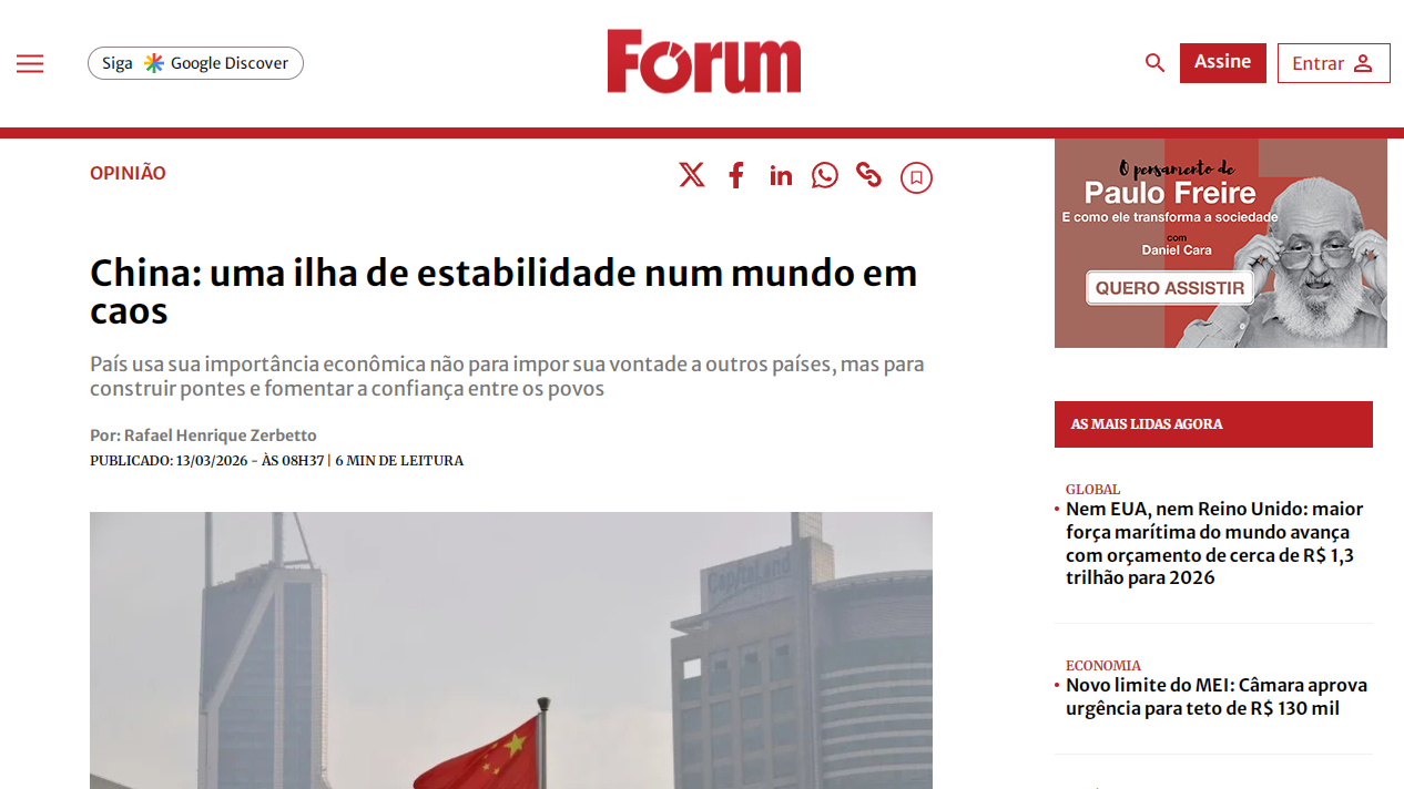 Brazilski medij: stabilnost Kine predstavlja temelj budućnosti pune perspektiva--- emisija 20260320