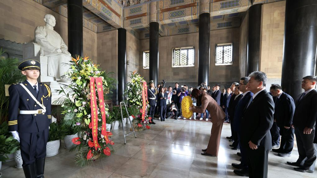 Predsjednica KMT-a Cheng Li-wun odaje počast Sun Yat-senu pred spomenikom u Pekingu